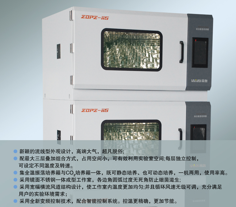 l集全温振荡培养箱与CO2培养箱一体,既可静态培养,也可动态培养,一机两用,使用率高;