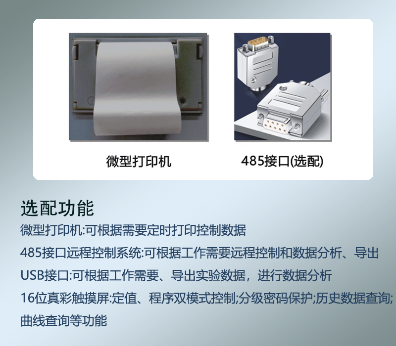 l中空钢化玻璃门,方便观察内部情况;侧面配¢30mm测试孔,方便测试及满足样品对氧气的需求。